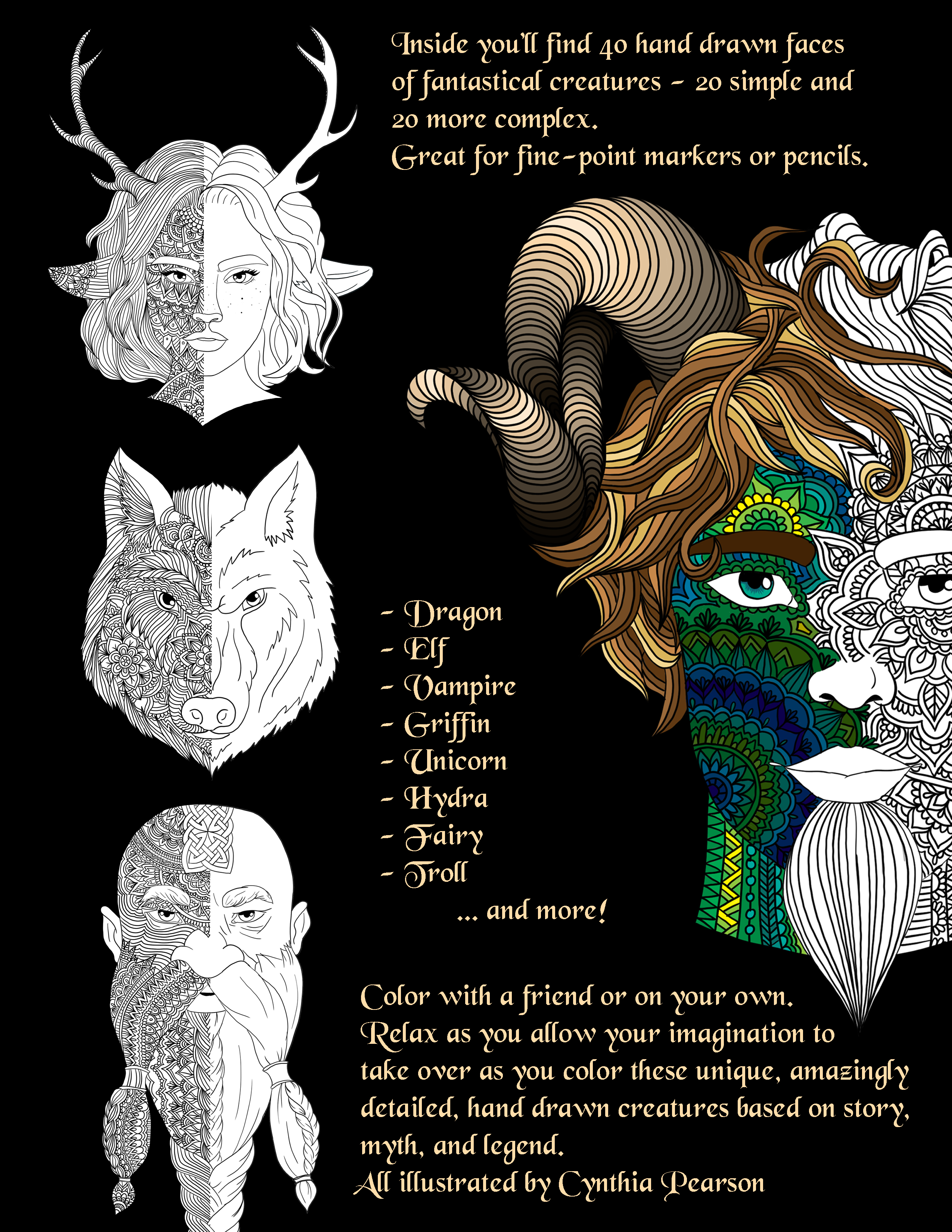 Click to purchase the “Faces of Fantasy coloring book” Amazon.com